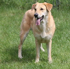 Tuck is a fun loving, ready for play kind of guy. He is often the one to initiate play. Tuck has a broad chest, straight front, straight rear, solid bone, nice curve of stifle, level topline, strong front angulation, good forechest.